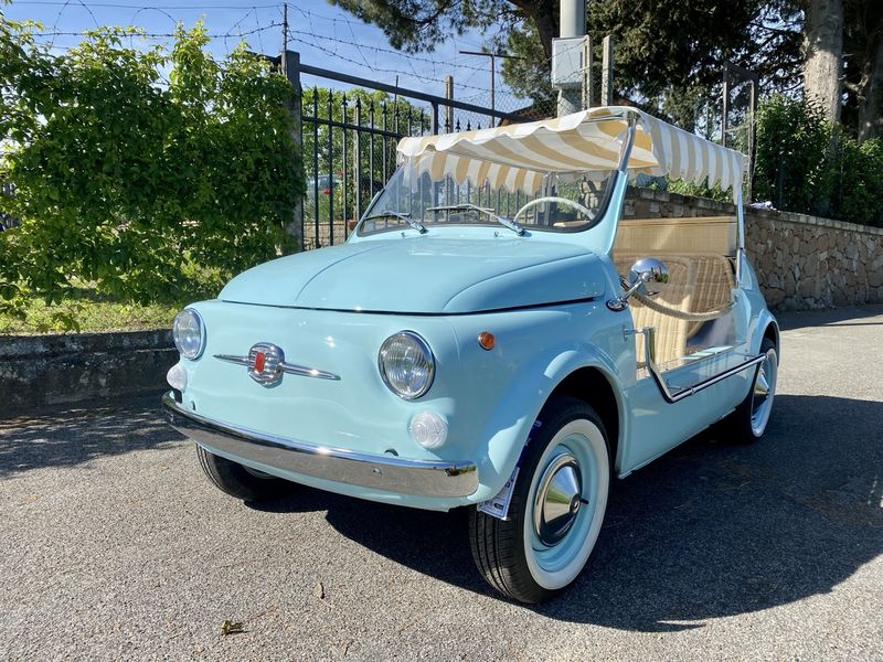La Fiat 500 'Jolly' è una delle versioni più celebri ed affascinanti della più iconica utilitaria classica italiana; le sue linee inconfondibili sono dovute all'estro di Ghia, che l'ha dotata di preziosi sedili in vimini e ne ha modificato drasticamente la carrozzeria, rimuovendo le portiere ed il tetto, per creare l'auto perfetta per divertirsi in riva al mare e nei resort più esclusivi. Questa particolare replica della Jolly del 1973 è il risultato di un restauro realizzato da un esperto ben conosciuto e ripropone l'indole spensierata dell’originale, offrendo in più l’affidabilità di una vettura appena completata.