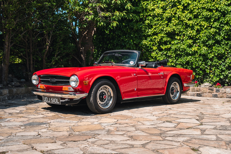 L'auto sportiva d'epoca britannica Triumph TR6 è famosa per il suo robusto motore in linea da 2,5 litri a iniezione di carburante e per lo stile aggressivo e distintivo. Costruita da Triumph dal 1968 al 1976, la TR6 è caratterizzata da un tradizionale layout a motore anteriore e trazione posteriore, con sospensioni posteriori indipendenti e una scatola del cambio manuale a quattro rapporti, spesso con overdrive opzionale. L'Anno fino a quello del 1973 è particolarmente desiderabile, in quanto conserva i primi spunti di design ma beneficia dei continui miglioramenti. Grazie alla sua maneggevolezza, alla nota di scarico e all'esperienza di guida a cielo aperto, la TR6 rimane uno dei modelli preferiti dagli appassionati di auto d'epoca britanniche.