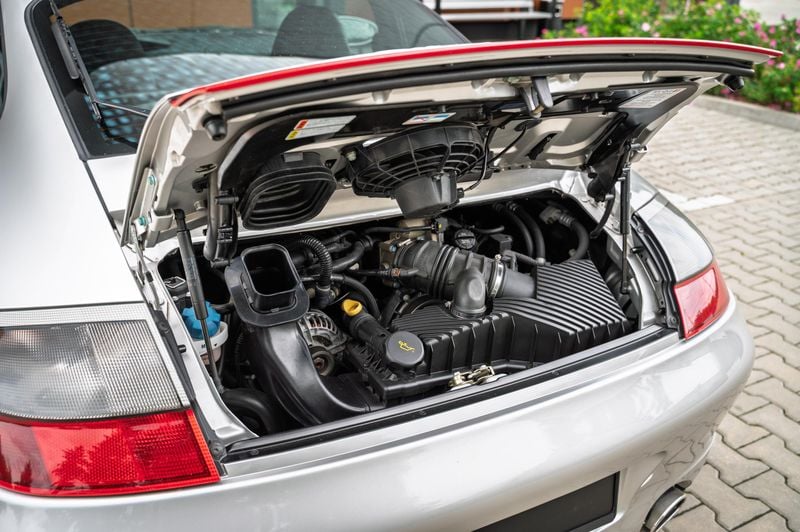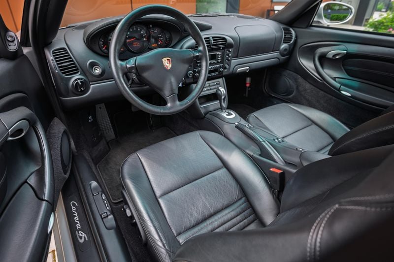 Verniciata in Arctic Silver classico con interni in pelle nera e Alcantara, questa è un'auto molto presentabile che sembra appena uscita dal showroom 21 anni fa. È di serie, fino alle ruote a cinque raggi “Turbo Twist” e all'impianto audio Porsche, e arriva sul mercato con l'ultimo service nel 2024.