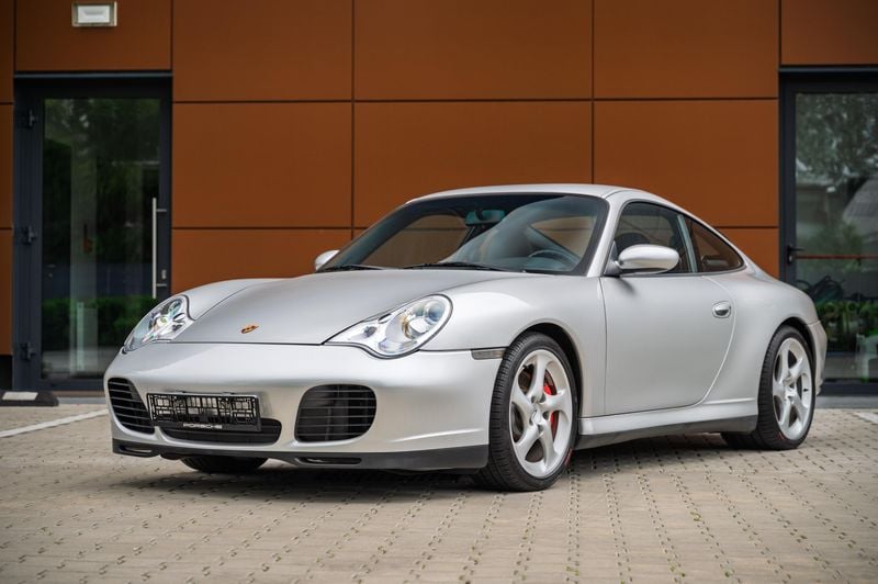 Aspetto Turbo, tecnologia AWD ben piantata, 320 CV dal 3.6L boxer a sei cilindri e cambio Tiptronic S a 5 marce molto versatile. Tutti validi motivi per volere questa Carrera 4S del 2004.