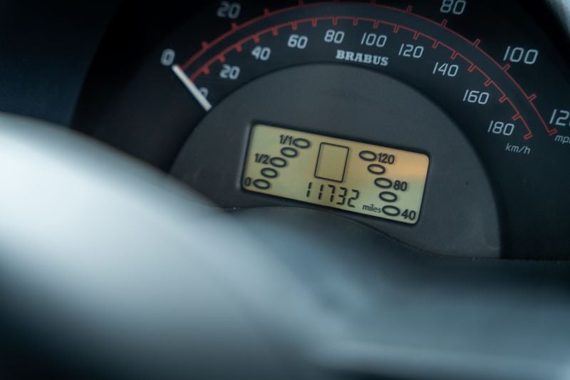 Oggi il W450 Brabus è molto raro. Probabilmente pochi esempi hanno un chilometraggio così basso come questa auto da 12.000 miglia, tre proprietari. È un esemplare davvero in ordine, in River Silver con interni in pelle parziale nera. Le caratteristiche originali Brabus sono presenti e sembra non sia stato modificato.