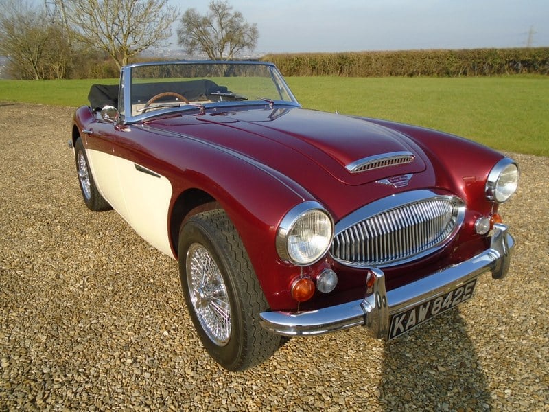 The BJ8 is the most desirable of Austin Healey models as it comes with winding windows, folding roof, wooden dash and improved ground clearance. An early phase 2 crossover car, so has the advantages of the phase 2 but the earlier body type with single indicators. 3 litre straight six engine with twin 2 inch SU carbs and loads of torque. 4 speed gearbox plus overdrive for cruising. Bodywork was restored to bare metal in 2014 with correct ice blue colour. Many new parts were installed and chrome work was rechromed. I also fitted a new interior in red vinyl