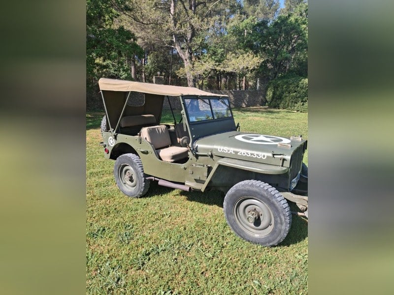 Very nice Jeep willys, Navy grey, 1945 plate. Mileage in 5 digits. Original 2. 0 litre, 50 bhp engine in very good condition. Regularly used for leisure outings. Complete new soft top, doors, axe and shovel, water can and petrol can. Original towbar. Vehicle in very good appearance and working order. US Navy markings. Superb in its Navy Grey livery.