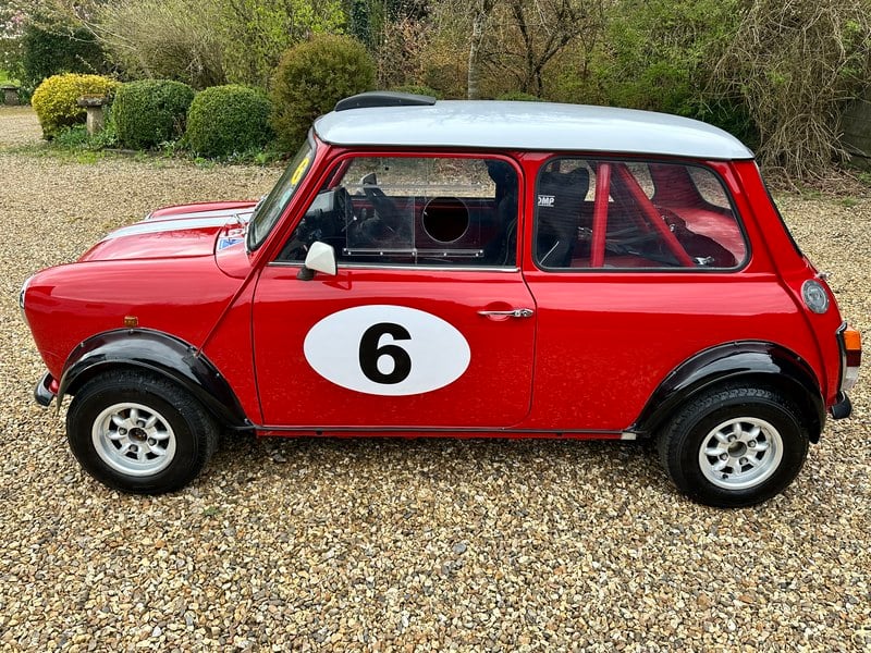 All steel car, good subframes, rose petal wheels with Dunlop Racing tyres, 7, 5 Cooper S AP disc brakes, heated windscreen, full FIA roll cage etc.