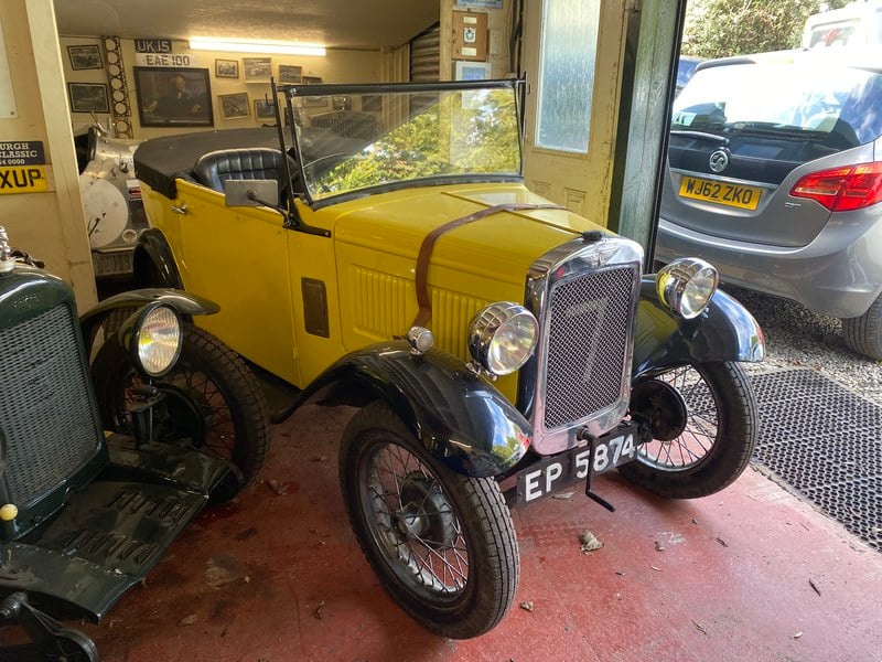 Austin7 RP 1934, sound soild car with strong Chassis, the car runs and drives, engine started with 12. volt slave battery. . New running boards made and fitted. The missing Headlamp found and fitted. Interior sear seat base missing and door glass. V5c . The has been dry stored, will make a great restoration project, VSCC Trials project or base as a Special