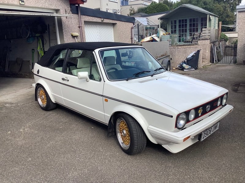 Mk1 Golf Series 1 in Florida, blau, in gutem Zustand. Hat ein paar Dinge erledigt, besitzt Luftfederung/ Air Ride, Interieur neu getrimmt. TSR 1. 9 8V-Motor, poliert und geporteter Kopf, Schrick-Nockenwellenabdeckung, Twin-Weber-Vergaser