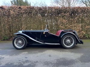1946 MG TC in previous ownership for almost 50 years. Drives well with a good strong, smooth engine. The car is an older restoration with a nice patina and has been well cared for since. The leather seats especially have mellowed beautifully. The paintwork has marks and blemishes. The engine is a factory replacement XPAG TC unit with original gearbox, differential, radiator, shell and original chronometric instruments so often not present.
