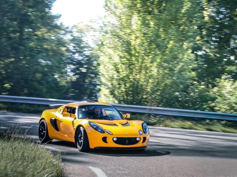 Relying on the brand’s characteristic extruded-and-bonded aluminium chassis, the S 240 retains a torsionally very rigid structure for a controlled weight around 930 to 950 kg. It is powered by a 4-cylinder 1. 8-litre Toyota-derived engine (2ZZ-GE) equipped with a supercharger, developing around 240–243 bhp and a torque close to 236 Nm. Paired with a six-speed manual gearbox, this setup delivers a 0-100 km/ h time of about 4. 5 seconds and a top speed around 250 km/ h.