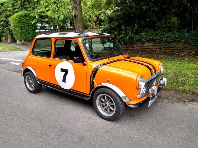 Färgad i British Racing Green med vit tak, speglar, motorhuv och sidstreck. Den är fri från rost vid samtliga vanliga Mini-problemområden (vindrutans hörn, A-sidan/ paneler, runt strålkastarna) jag har också bifogat bilder på dessa områden.