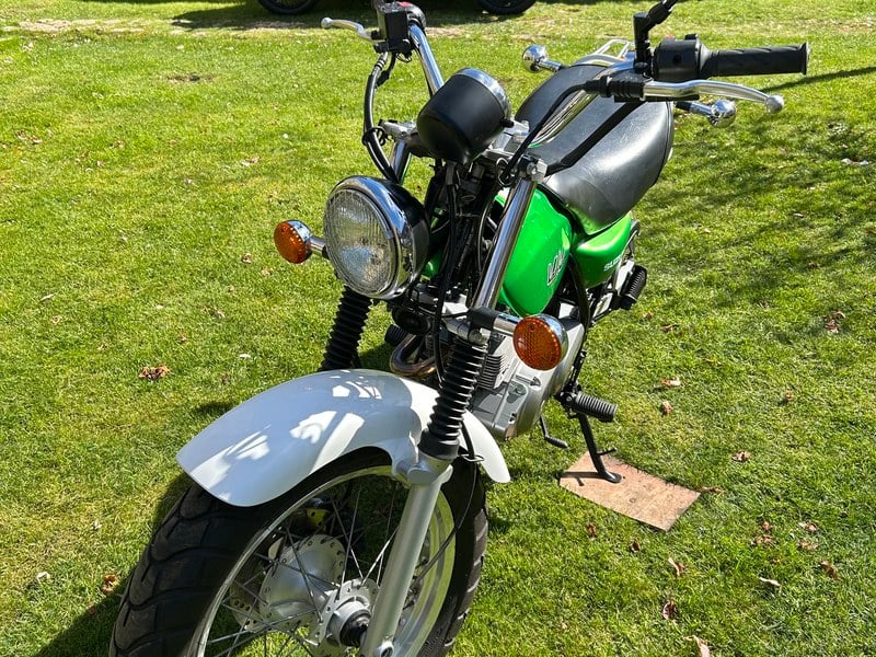 Suzuki RV125, moto color sabbia giallo. Moto classica degli anni '70. Motore due tempi da 123cc che richiede olio per due tempi. Revisione MOT ed esenzione dal bollo stradale. Qualche piccolo segno di fori sulla cromatura, ma nel complesso in ottime condizioni per una moto di 52 anni. Felice di scattare e condividere foto aggiuntive se necessario. 1 proprietario (mio padre) prima di me. Usata con parsimonia negli ultimi anni e ristrutturata circa 5 anni fa, tra cui una nuova batteria e pneumatici. In buone condizioni di funzionamento e conservata sempre in garage asciutti durante tutta la sua vita.