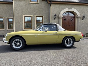 Beautiful MGB Roadster in the very rare Lime flower colour “Not yellow” introduced for 100 models only in 1973. A chrome bumper model with over drive and extensive service portfolio, receipts, hand books, owners manual & all keys. The wheels are in lovely condition & tyres have all great tread. It had full new set of fitted carpets bought from MG in England. The interior is original blue colour & leather seats & door panels are great condition. I also have original tonnu cover plus other bits & pieces. The engine and accessories is original & hasn’t been painted etc… At 53 years old this very honest solid & reliable MG starts first time no matter how long it sits in my garage. I have owned her for the last 10 years 5 of which I had her at our holiday home in Spain. The car hasn’t seen wet weather in my ownership. The price is £10, 950 and would really like someone to look after the car & enjoy it as we did. I can arrange delivery if need be. No time wasters please…This little car gave us 10 years of enjoyment in Spain & UK with not one minutes bother… Very reluctant sale…