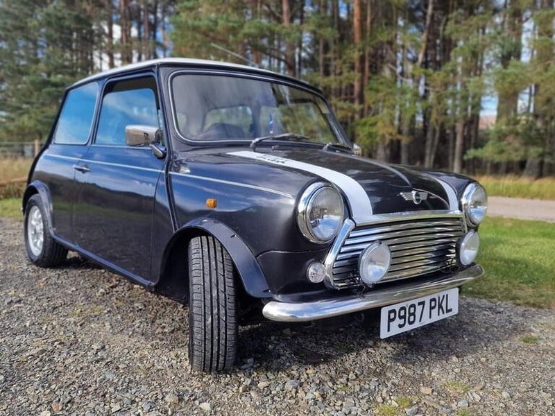 Classic 1997 Mini Cooper MPI i sällsynt anthracitgrå, tillsammans med Monte Carlo-inredning och ny valnötfärgad instrumentpanel. 6-månaders besiktning. Den här Minis är i utmärkt skick och har förvarats inomhus, noga omhändertagen. Färsk service, helt nya kompletta bakbromsats på båda sidorna, helt ny generator, ny styrväxel på grund av en anmärkning i besiktningen, nya främre stötdämpare och ny batteri.