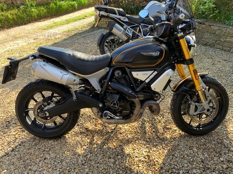 A 2018 Ducati Scrambler 1100 Sport in great condition for year. Mileage presently 17, 300 and may increase marginally as still being used. Full service history mostly with Ducat approved service centre. Recent work includes front fork seals and service, new rear tyre, new rear master brake cylinder.