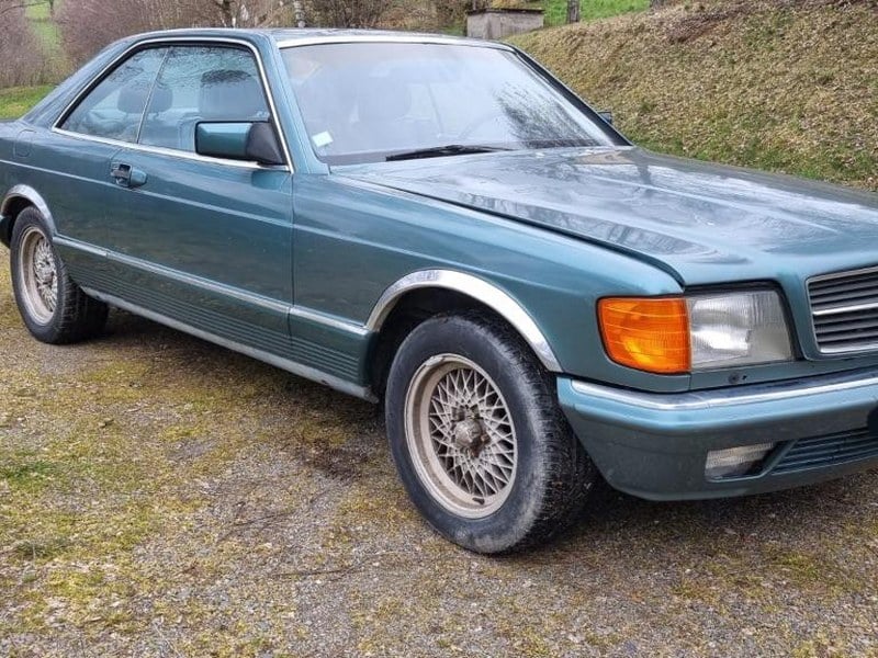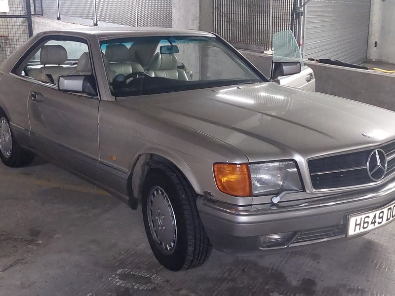 Mercedes Benz 420 SEC (W126) in Smoked Silver with original cream leather seats & walnut trim.