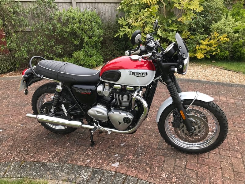 Triumph Bud Ekins. T1200. 2021. Rare Triumph Limited Edition, Low miles 3, 500. 1200cc High torque engine, Data tag, Crash bars, Rear gab bar, 2 keys, Ltd edition certificate, MOT, New battery fitted, full spec and details/ info can be found on the web. This bike cannot be faulted it is gorgeous.