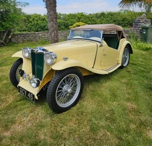 1949 MGTC GCY 45 £37, 500 i Coventry cremefärgad lack, totalrenoverad från grunden med allt nytt och ombyggda komponenter av en ägare till en MG-verkstad i Bristol med en livslång erfarenhet av MG i alla modeller, till concours-kondition med 795 miles körda hittills, torrt väder endast.