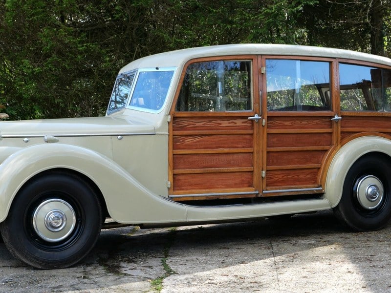 1947 Riley RMA WOODIE…. utility med coachwork av Massey, den enda överlevande av de två producerade bilarna. Färdigställd i beige med originalrött läder och nya röda mattor. Askramen är i underbart skick likaså träpanelen. Delad baklucka, perfekt för picknickar, att titta på polo mm, vacker och unik trälamellklädsel i taket. En stilfull och snygg motorbil.