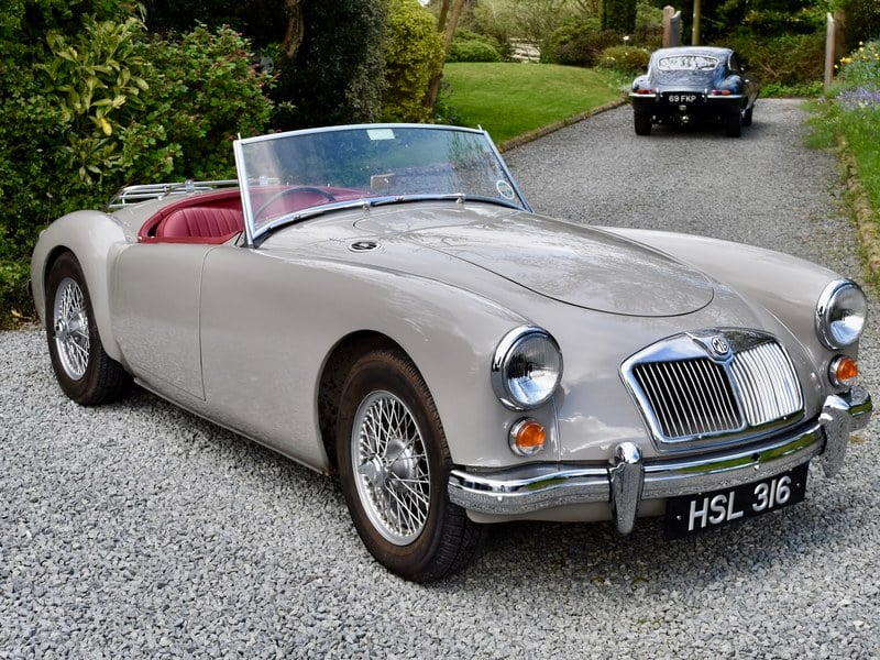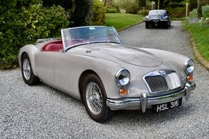 The MGA has to be one of the most delightful and easy to own British 1960's sports cars. HSL 316 was imported from the USA in 1999, this car was totally dismantled and rebuilt from the ground up by the first owner. A lovely 1960 MGA Roadster, finished in the Dove Grey with a red interior. Supplied with a new black hood, not yet fitted. Painted wire wheels.
