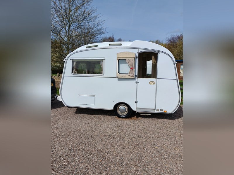 Full oven grill and hobbs fridge battery and electric lighting mains hook up with on board battery charger carver gas room heater on board water heater gas lantern light store away dinning table sink with electric pump side locker holds 2 gas bottles original seating in very good condition there is no damp or leaks everything in perfect working order and in very good the tyres are recent and there is a spare. It tows perfectly all the tow lights work as they should and the chassis is solid it really is a beautiful little caravan ready to use or show my original intent when I got the caravan was to show it but unfortunately lack of space to keep it where it is it's best to be sold and enjoyed by someone else for further info please call