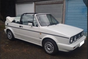 Mk1 Golf Gti Cabriolet 1990 Model - Quartet Triple White Edition - Vit lackfärg, vit huv och vit interiör. Redo för sommaren efter vinterförvaring och allt servat, redo att njuta. Levereras med vit bagagerumslucka och vindskydd. Nya delar nyligen inkluderar bakre stötdämpare och fjädrar runt om, bränsletankens fyllningshals, bränslepumpens relä och bränslefiltret, batteri, tändmodul, tändstift och olja samt filterbytes. Nytt heltäckningsmattset och registreringsskyltar. Mycket gott skick och huven är perfekt efter att ha bytts ut för några år sedan när bilen renoverades helt.