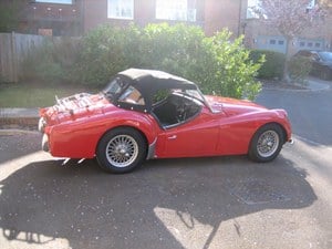 Original UK right hand drive car, Overdrive. Built on 9th March 1960 and delivered to South Devon Garages . First registered 5th April 1960 retaining its original Reg number today. A Matching numbers car. Excellent rust-free body work in fine signal red paintwork. Impeccable underneath. Very good brightwork all round. New Double-duck hood in black with as-new side-screens. Tonneau (pvc). Recent new leather seats in Black with white piping. Overdrive gearbox 3, 4( Laycock). Stainless steel exhaust. 2 new SU carbs. Good history file. Just 4 previous owners , one of 39 years. Marque specialist maintained. . If you have spent any time looking for one of these you will recognise , on viewing , that this car is a very good example. She is pretty much in ex-factory standard-form except for the engine upgrade to 2138 cc . Maintained as required. On the button.