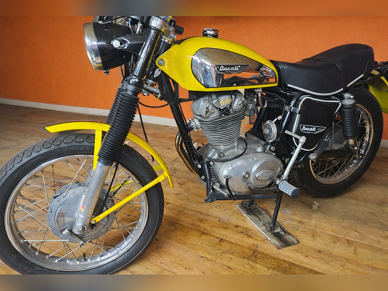 Ducati Scrambler 450 Desmo de 1971, primeira série numa rara configuração Desmo, restauro conservador, condições de concurso, matrícula original de Turim com documentos em ordem para a transferência de titularidade. Fico disponível para eventuais esclarecimentos. Sem trocas, obrigado.
