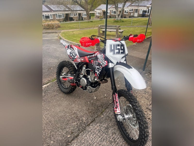 A mota recebe manutenção regularmente e, como pode ver pelo estado das forquilhas, rodas e chassis, não teve uma vida difícil. Não está equipada com odómetro nem com contador de horas. Por isso é inspecionada a cada 40 horas e funciona como um relógio. À venda devido à chegada de um novo membro à família e já não ter tempo para andar em enduro.