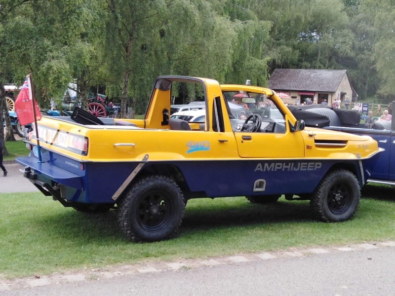 AMPHIBIOUS 4x4, based around a Suzuki SJ413 into a Dutton Amphijeep hull. This donor vehicle was chosen for its 1600cc, simple engine. No ecu etc. Just plugs and points. adapted to it is an SU carb, a common conversion for this engine. Transmission is a standard Suzuki with water propulsion via a pto. It has a removable hardtop over the cab area and one over the rear. Door tops are with it, but usually one only uses it on fine days, so this stuff is left ashore. The MoT and Boat Safety certificates have expired, but there should be no problem. Questions welcome and viewing is highly recommended. Not many of these around. Definitely a head turner and great fun.