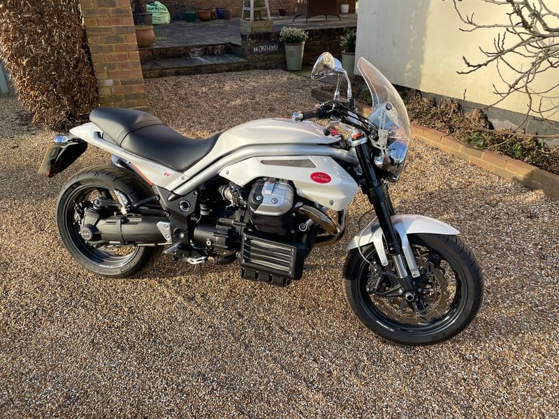 Ungewöhnliches Motorrad in nahezu neuwertigem Zustand. Termignoni-Auspuff (Original ebenfalls im Verkauf enthalten) und MotoGuzzi-Windschutzscheibe. Neue Reifen, auf denen weniger als 100 Meilen gefahren wurden, und vom örtlichen Händler serviced; letzter Service bei 2. 800 Meilen. Wird vor dem Verkauf eine HU erhalten. Ich habe das Motorrad seit Anfang 2011 besessen – der Erstbesitzer fuhr es nur 50 Meilen – und ich habe es nur sparsam an sonnigen Tagen benutzt. Leider wird es nicht mehr genutzt.