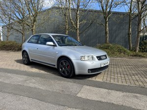 1.ª geração Audi S3. Um dos meus carros de sonho no início dos anos 2000. Este carro está em excelente estado. O proprietário anterior em Glasgow mandou fazer algum trabalho de pintura e a tinta agora salta ao sol. Freios melhorados instalados de forma criteriosa, pois esse era um dos pontos fracos originais do carro quando foi lançado. Recentemente coloquei pastilhas novas, juntamente com uma revisão completa e o compressor de ar condicionado substituído, pelo que o ar condicionado agora sopra frio com fiabilidade. Também substituíam-se todos os amortecedores e molas, pois os originais já estavam gastos. Mantive a suspensão original para uma condução confortável e foram instalados novos bushings de poliuretano para complementar e melhorar. O forro do tejadilho e as capas das portas foram re-trabalhados e os bancos originais Recaro não têm rasgos nem cortes. Unidade head de dupla din instalada com rádio digital, NAV e streaming de música. Pneus Michelin Pilot montados com 50% de banda de rodagem. 2 chaves remotas a funcionar, histórico de serviço extenso, correia de distribuição e bomba d'água trocadas, serviços Haldex, revisão anterior da caixa de velocidades e embreagem. Necessita de um novo sensor ABS e as jantes precisam de um pequeno retoque. O carro recebeu re-mapeamento e peças de admissão de apoio instaladas pelo antigo proprietário e o meu técnico suspeita que aproximadamente 300 cv já estejam disponíveis. Arquivo grande com muitos recibos e carimbos de serviço ao longo de dois livros.