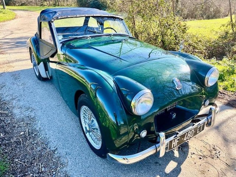 TR2 von 1955 mit Overdrive, Racing British Green. Fahrzeug vollständig restauriert, seit dem Chassis vor etwa einem Jahrzehnt, mit Fotounterlagen. Großes historisches Dossier mit Ordnern von Rechnungen. Der Motor wurde überholt, Kurbelwelle überarbeitet. Lenkgetriebe, Elektronische Zündung, Scheibenbremsen, Auspuffrohr aus Edelstahl, Michelin-Reifen, Originalheizung, die funktioniert, Verdeck und neue Seitenscheiben. Fahrzeug zuverlässig, Video möglich, SammlerzulassungFahrzeug gekauft von einem irischen Ehepaar, das in Frankreich lebt und das ich seit langem kenne; die TR2, die von einem Franzosen gefahren wurde, wurde sorgfältig gepflegt und nach dem Tod des Herrn von seiner Ehefrau an mich verkauft.