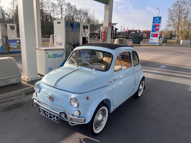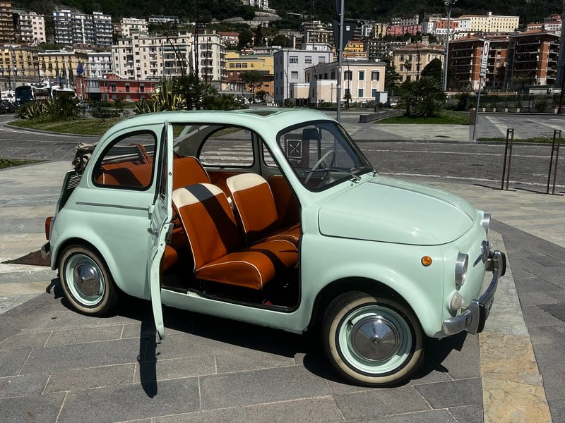 For sale: this charming 1964 Fiat 500 D, finished in an elegant and rare aquamarine green, a shade that perfectly enhances the model's iconic lines.