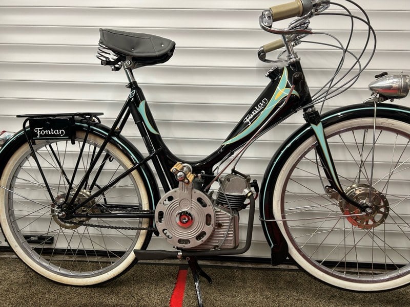 Super rares Elvish Fontan, der ‚Bentley der Autocycles‘, ein Elvish Fontan Rocher Ducati Cucciolo mit dem sehr seltenen Mark VI Rocher-Motor. Der Motor läuft und das Fahrrad ist völlig restauriert von Grund auf. Wird mit Rocher-Handbuch, Datierungszertifikat und einer signierten Postkarte des großen französischen Radfahrers Victor Fontan selbst geliefert.