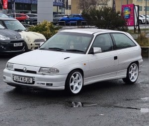 Vauxhall astra gsi for sale. This is the rarer 1. 8 version of which I believe only 5 are left on the road. Front and rear strut braces new headlining, recent front brembo discs and pads, stainless steel powerflow exhaust system, original interior in good condition. 17 inch fox alloys and new tyres. also have a set of 15 inch fanblade alloys in need of a refurb which I will throw in. Motd till December. A genuinely honest car ready for the show seasonA head turner due to its rarity