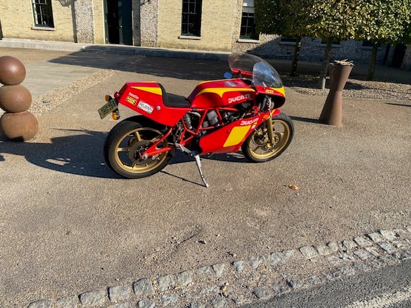 Ceci est une recreation homologuée route de la Ducati TT2, triple championne du monde de Formule 2. (1981, 1982 et 1983)