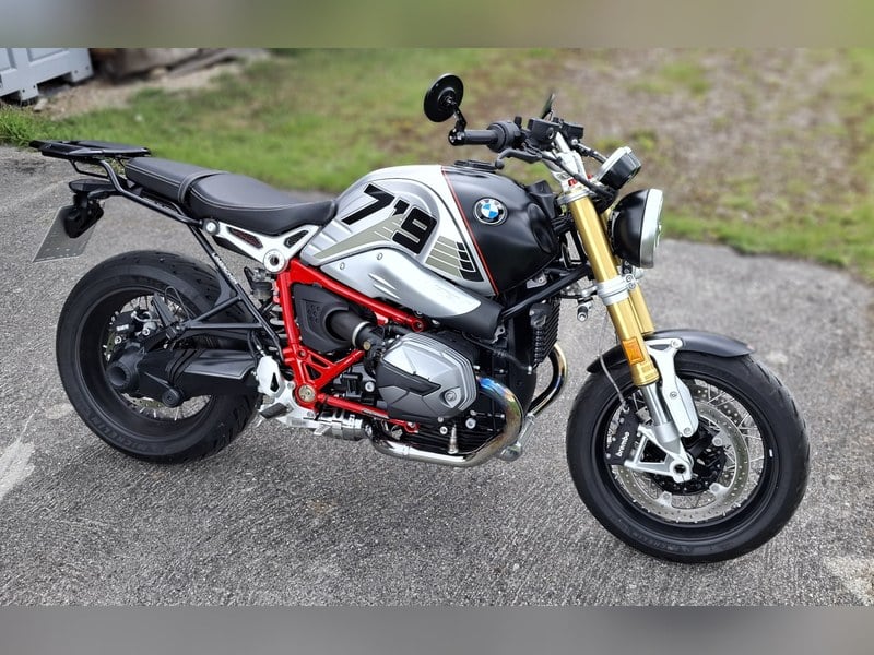 Selling for health reasons my BMW Rnine T in 719 design silver/ black with a red frame.
