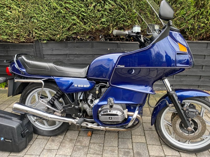 A very original R80 RT 1989 BMW motorcycle. Blue in colour with a more than comprehensive service paperwork. On the clock it reads 15591 miles but on the paperwork is just under 50000 miles . It is currently sorn . It’ll need an MOT and service . It sounds lovely. It has a new battery.
