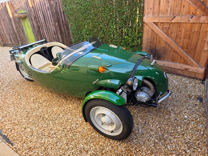 Built and registered in 2024 by the owner and designer (myself, Richard Oakes.) This gorgeous front drive three-wheeler is for sale, together with all the tooling for making more, including jigs, fixtures, moulds, CAD files and so on. Also included are many essential and unique components.