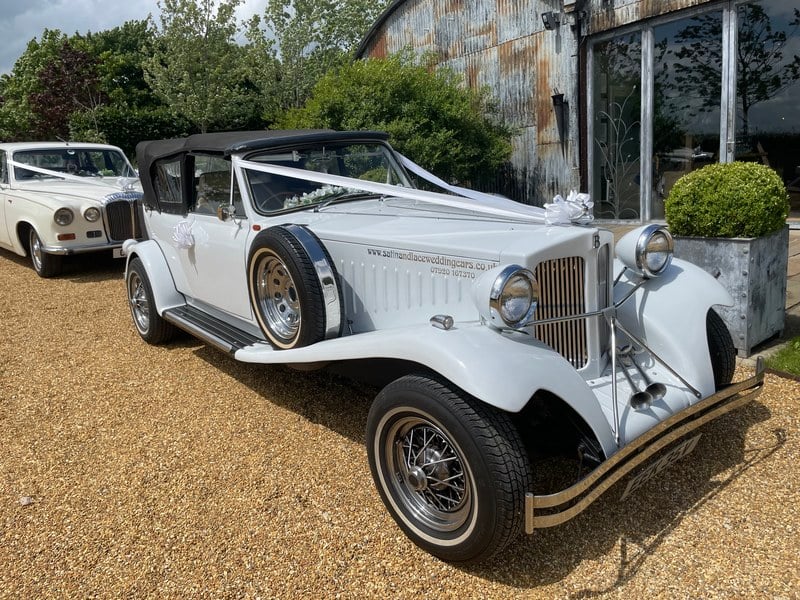 Beautiful Beauford Convertible finished in elegant cream, registration 407 FYE. Year of manufacture: 1963, making this stunning classic vehicle Tax and MOT exempt. A timeless wedding car that turns heads wherever it goes and has been a reliable part of our fleet.