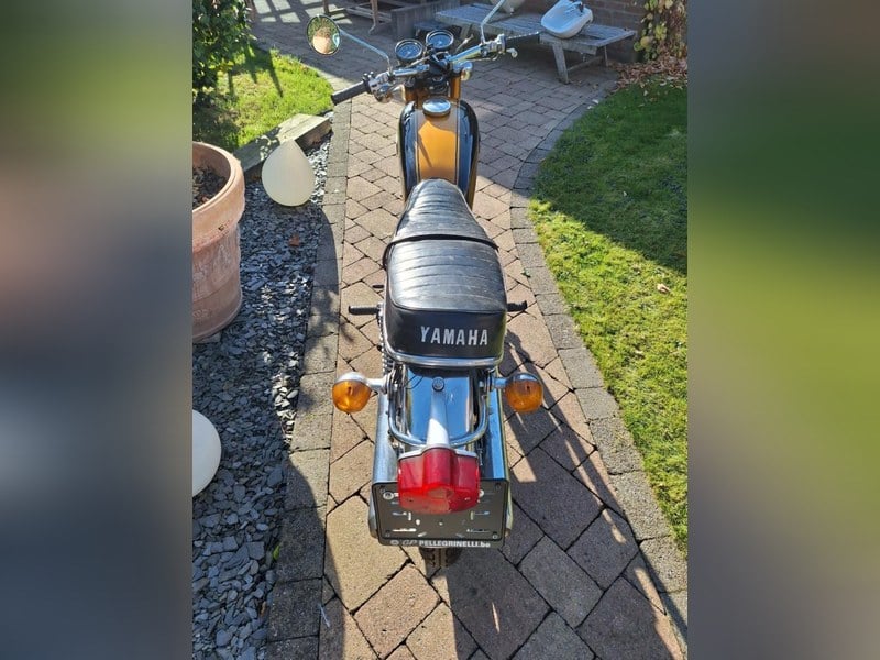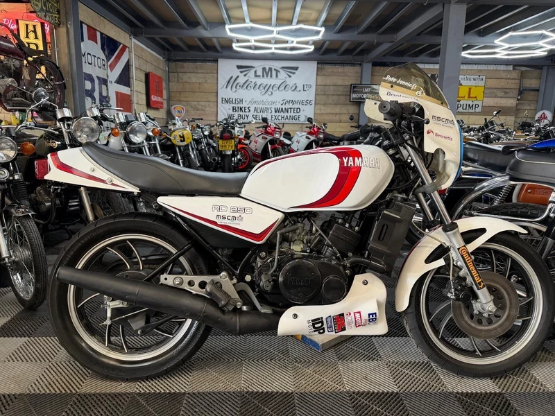 A minha RD 250 tem 1 dono desde novo... tudo original, nunca foi mexido. Os raios dianteiros e traseiros têm alguma ferrugem. Todas as luzes funcionam, bateria nova recentemente. Funciona bem. Os carburadores precisam de limpeza. Novos pistões de travão dianteiro + vedantes. Precisa de sangramento. Uma chave serve para todas as fechaduras. Livro de registo presente. Sem ferrugem no depósito. Posso entregar dentro de 50 milhas por uma pequena taxa.. História: comprei esta moto com o plano de restaurá-la. Mas quanto mais a olhava, mais gostava da sua originalidade e nunca consegui mexer nela, esteve no meu celeiro durante vários anos +. Há uma dentada no conta-revoluções e no piscas, e uma marca no guarda-lama dianteiro. O primeiro dono tirou-a da garagem nos anos 70 um dia e deixou-a cair, daí a dentada no conta-revoluções, etc. E nunca a conduziu novamente, portanto a quilometragem original é baixa. Very hard to find these bikes in a untouchd condition.