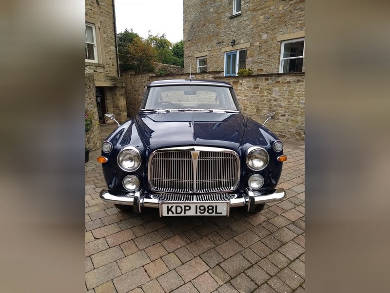 Three former keepers, 31340 miles recorded and supported by service and M. O. T. history. Finished in Admiralty blue with buckskin leather interior. Engine reconditioned by Rover V8 specialist including appropriate upgrades.