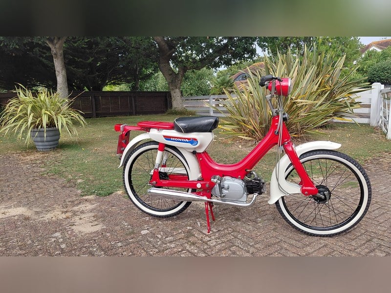 VBT 803J é um dos very first Honda PC50 K1’s produced and registered em setembro de 1970. O K1 viu um novo OHV engine substituting o original OHC, but este é um chassis crossover que desfruta de algumas features do antigo também. Sendo fã do PC50, possuímos cinco neste momento e restaurámos dezenas, além dos mais velhos P50s e PFs e até o Europe only 3-speed PS. O original buff log book foi transferred pelo primeiro owner em 1977; existem também old MOT certificates dessa altura em Bridlington, Yorkshire, antes da sua move north para Dalkeith, na Escócia, onde passaria a maior parte da sua vida. Foi usado rarely e nos anos 80 foi posto num galpão onde permaneceu até fevereiro de 2021, quando o new owner (um local em Dalkeith) resgatou uma Honda bastante desfeita. Alguns meses depois, adquirimo-lo dele, originalmente para partes, e transportámo-lo para o sul da costa quando, após uma detailed inspection, descobrimos que estava totally sólido e um rare example. Certamente, o finish original Rat Grey era patchy, mas qualquer corrosão era superficial, enquanto as rims and spokes falhadas podiam ser substituídas. Sendo um crossover de 69/ 70, veio com todos os grey rear shocks, uma cush-drive rear sprocket e largely unmarked grey mudguards items não frequentes de encontrar (ou atualizados) em versões posteriores de 71-onwards. Tomámos a decisão de restore enquanto mantínhamos o maravilhoso character do grey frame que foi ‘flatted’ em três stages antes de um machine compound, deixando uma great base para várias coats de two pack lacquer. New rims sourced from Mopedland com stainless spokes supplied by Alex Warwick. Refurbished hubs, fresh bearings e shoes com rebuilt wheels clothed in tubes e Continental white wall tyres. O original engine run, but smoked e was tired e como já tínhamos um rebuilt and ready, foi instalado com new chain, sprockets and exhaust. O único negative é o ‘Achillies heal’ do PC50 being o speedo drive tag washer, estes bend and are no longer available o que impede o cable turning; the speedo unit e milometer work fine. Just one of our five PC’s has a working speedo although Mopedland state they are awaiting a batch to be produced, frustrante quando the part cost a couple of pounds. Ironically the chance of braking the speed limit é rara num PC50, com uma top speed de 28mph, that said, o four-stroke motor offers good acceleration e reliability, que é o best of any 70s moped. Felizmente o fuel tank estava empty when stored e limpo easily, along with its opposing tool box finished na correct (2 pack) Cloud White e novas graphics sourced. Já fazem four years desde a restauração ser completada com o plan to keep this one, mas space está a ficar tight com three more PC’s in the garage, este rather unusual example está oferecido para sale. Qualquer test/ viewings welcome, build images e video está disponível, Owners Manual plus V5 registered ‘historic’ e priced to sell, so I am firm on the price ... questions please just ask.