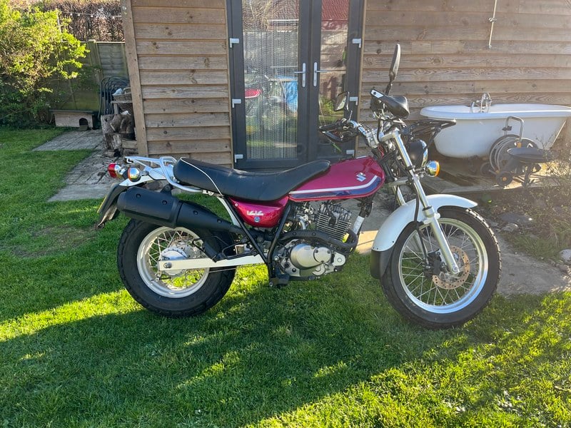 Suzuki RV125 VanVan, excelente exemplo não modificado. Poucos extras adicionados, rack frontal feito sob medida, protetores de mão, ponto de carregamento SAE / tomada de carregamento USB, corrente O-ring dourada. Teve uma nova MOT em 09/ 03/ 2026 sem avisos. A cor é Candy Magenta. A moto teve 3 donos anteriores e tem sido bem cuidada desde nova.