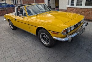 One of the nicest Stags in the country today, it was professionally restored by the previous owner who's business is a body repair and paint shop specializing in classic cars. It's had new sills, wings and door skins, no patch welding and bare metal repaint to the original Inca yellow. The mechanics of the car was outsourced including full engine and gearbox nut and bolt rebuild. Alloy wheels refurbished and diamond cut, new fuel tank a fuel lines too many things to list really. I have receipts of over £9, 500.