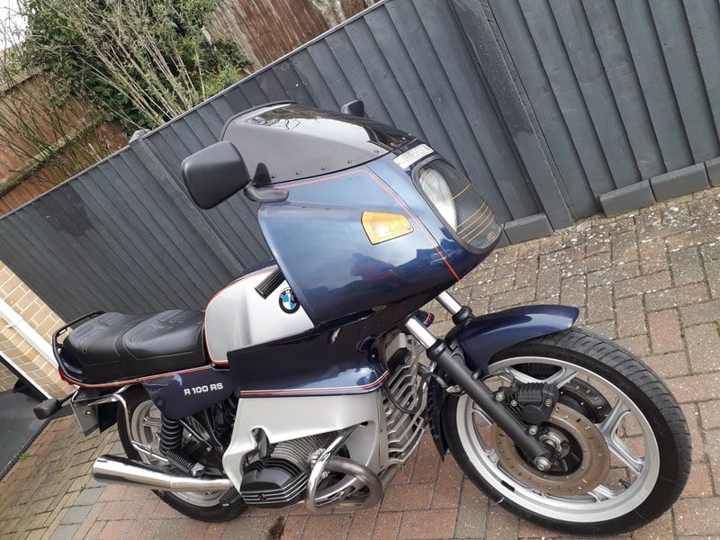 A lovely low milage R100RS in fantastic condition, ready for summer touring or perfect for classic bike shows. No corrosion at all and paintwork wonderful. This classic BMW R100 RS was imported from Japan by independent BMW specialist James Sherlock Ltd Devon. The motorcycle has only done 16, 142 kilometers and has an MOT valid to 07. 09. 2026, as well as the UK V5 documents. This motorcycle is really in excellent condition, (manufactured in 1995) the seat is excellent and the chromework is almost without blemish. The Boxer engine sounds fantastic with fuel delivered by the Bing carburettors. Chrome crash bars are fitted and the two original pannier luggage boxes are perfect, with excellent tyres and alloy wheels. A recent very low mileage example sold at Anglia Car Auctions (Kings Lynn) for in excess of £9000. So this example is perhaps as good, a true investment and very desirable future classic.