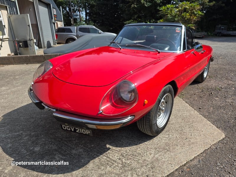 Alfa Romeo Spider 2. 2, manuelles Getriebe. Dies ist ein gutes, originales Auto, das nicht modifiziert oder manipuliert wurde. Kürzlich wurden einige Arbeiten daran erledigt, der Dachmechanismus wurde vollständig neu aufgebaut, neue hintere Koilfedern, neue Batterie. Die serienmäßigen 18-Zoll-Alufelgen wurden gerade vollständig restauriert und vorne ebenfalls neue Reifen montiert. Alle mechanischen Arbeiten wurden von einem Alfa-Spezialisten durchgeführt. HU bis April 2027. Mit nur 60. 000 Meilen läuft dieses Auto 100%. Kein unerwünschtes Klappern oder Quietschen. Der Innenraum ist ebenfalls ausgezeichnet mit sehr geringem Verschleiß, keine Risse oder Löcher. Unter der Haube ist es sehr ordentlich mit einem guten, trockenen Motor und again nicht herumgebastelt. Dieses Auto braucht nichts – außer gefahren zu werden.