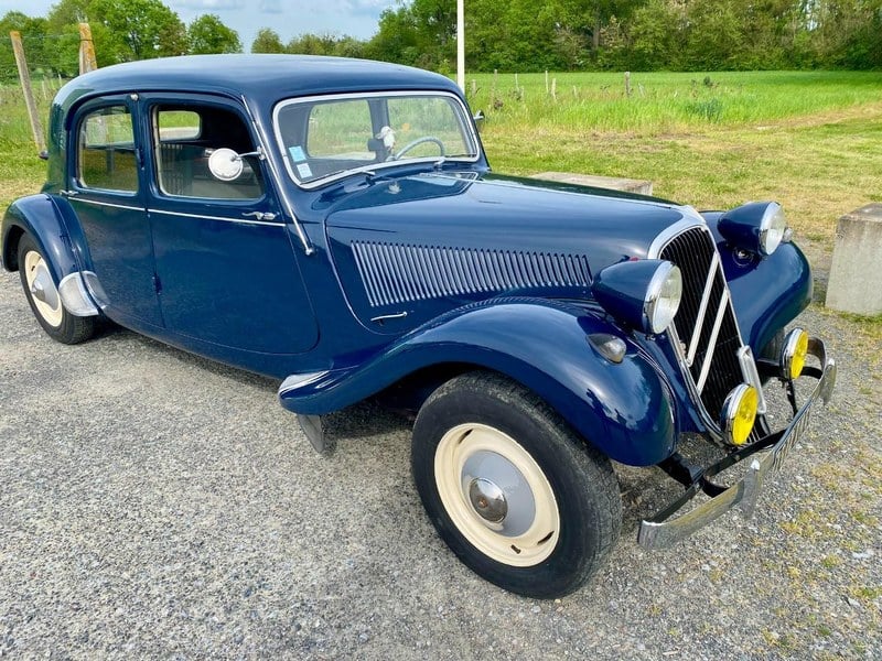 Ref : 103403 Registration date : 01/ 01/ 1950 Kms (non guaranteed) : 17926 Driving : Left Hand Drive Registration : Normal Number of seats : 5 Number of cylinders : 6 in line Displacement : 2867 cm3 Fuel : SP 98 + Additive CV Din : 77 CV fiscaux : 16 Gearbox : Manual 3 gears Body colour : Lacquered Black Interior colour : Velours Taupe Tyres : Wear Av 60% + Ar 30% * 12 MONTH GUARANTEE included * HANDBACKS and DELIVERY possible * Start-up costs extra : 690 € VAT included (1/ 4 fuel, technical inspection, interior and exterior preparation) * Service "carte grise" and "carte grise collection" (FFVE file included) CITROEN TRACTION 15/ 6 (1947 - 1955) 41 926 ex. produced Flat trunk version with visible spare wheel 6 cylinders in line 2. 867 cm3 Chromed air filters Technical controls available since 1993 Invoice file: 2. 971€ Tilting windscreen Chromed rear-view mirrors Manual wiperManual windscreen wiper AXO front and rear fender bezels MARCHAL headlights 2 MARCHAL 640-type fog lamps 4 original metal wheels 4 original chrome bezels MICHELIN 185 x 400 front tyres Robri exhaust tailpipe Taupe velour upholstery with matching piping Velour headlining Rear central armrest Bakelite steering wheel Rear central armrest Original 2-spoke bakelite steering wheel Bakelite gear knob JAEGER on-board instrumentation SMITHS oil pressure gauge Water temperature gauge Storage net Front pvc carpets Rear "Sable" coloured carpets Spare wheel Crank Jack Fire extinguisher Bodywork / Exterior : The model presented here is a CITROËN Traction 15 six from January 1950 in its original "Black lacquer" colour. The original paintwork is in good condition. After a professional polishing carried out by our workshop, we have noted the presence of two paint chips on the left front wing, a few paint defects on the door sills, some rubbing marks on the right front wing and scattered scratches. The headlight housings are in good condition. There is a small scratch on the right-hand headlamp cover (2cm). The tilting windscreen is fully functional. The chrome bumpers and their stops, as well as the headlight surrounds, are perfectly positioned and show a few traces of oxidation and superficial scratches. The original AXO wheel trims and front grille are in good condition. The door handles and the chrome casing for the spare wheel are also in good condition. The MARCHAL headlights are in very good condition. This car is fitted with MARCHAL 640 type fog lights. The 4 metal rims are in good condition with no dents or deformation and only a few small paint chips. The original chrome hubcaps are in good condition, with a few traces of oxidation and superficial scratches. The front MICHELIN 185 x 400 tyres show 60% wear. The rear MICHELIN 185 x 400 tyres show 30% wear. This model retains its original spare wheel, jack and crank. Among the interesting "Body / Exterior" equipment and options present on this model, we noted the MARCHAL 640-type foglights, the tilting windscreen and the AXO fender trims. Interior: The interior has retained its original configuration and appears to be in good condition. The "Taupe" velour upholstery with matching piping is in fair condition. There is one small hole and a slight sag in the driver's seat. We also noted a few small holes in the left-hand rear seat and some distortion of the velour. All of the velour trim and matching door jambs are in good original condition despite some minor cosmetic defects. This example is fitted with a removable central armrest at the rear. The body-coloured dashboard with horizontal bars is in good original condition with only a few minor scratches and paint chips. All the original JAEGER instrumentation is fully functional with the exception of the backlighting. The original bakelite steering wheel is in fair condition despite some cracks in the bakelite. The gear knob is in good condition with an even patina. The original headliner has a few stains and a tear at the rear. The storage net is in good condition. The front pvc floor mats and rear mat are in good condition. Among the interesting equipment and optional extras on this model are the storage net and water temperature gauge. Chassis: On deck, the car's body and chassis are sound, with no visible damage or structural corrosion, despite some signs of repair work.