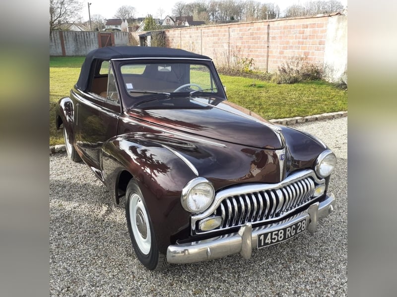 Cabriolet from July 1952. Second owner, I’ve had it since 1974. Vehicle fully restored. Engine with 5, 000 km. Leather upholstery in fawn with a third seat. Black hood (top) in good condition. Wiring loom fully rebuilt. Paint and tyres 165x400 new. Brass Poitevin grille with fog light, Zenith double-barrel carburettor, 4-into-1 stainless exhaust, Ferrand lights. Runs well over long distances. Normal registration certificate. Call me for more details.
