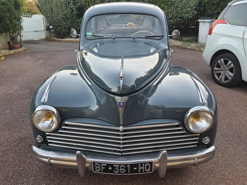This Peugeot 203 features numerous accessories such as additional Marchal headlamps, a functional Révor onboard clock, RF wheels, Robri wing and exhaust outlet sets, etc.