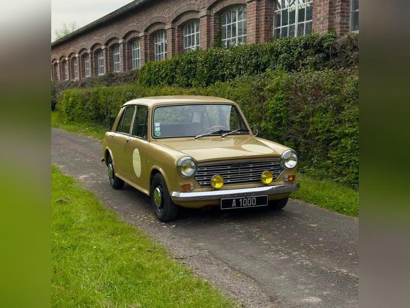 Atelier des 1000 presents for sale this very charming Morris 1300 MK3 4-door, in an elegant beige finish paired with an original brown interior, offering a warm and authentic overall feel.